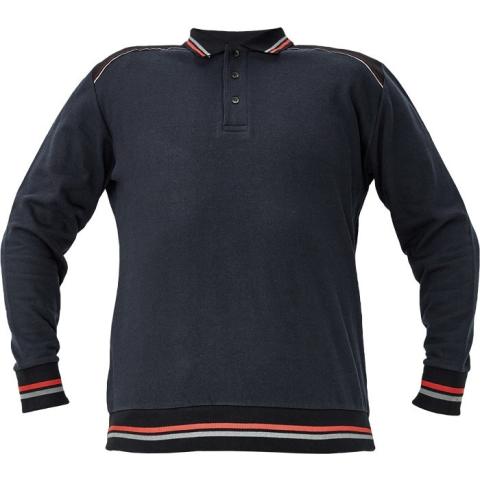 KNOXFIELD galléros pulóver antracit/piros, antracit/sárga, antracit/narancs Férfi pulóver, pamut és PES kevertszálas francia frottír anyagból. Fésült, puha belső felületű. Kontrasztos fekete vállrész, fényvisszavető szegéllyel. 3 gombos nyakkivágás, k