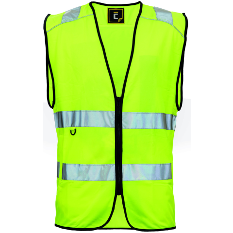 Jólláthatósági mellény 2 fényvisszavető csíkkal, fekete vállrész fényvisszavető szegéllyel
