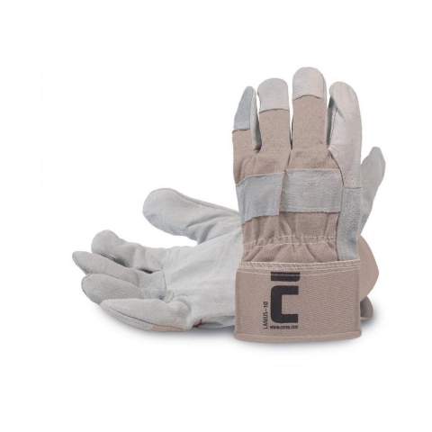 Lanius bőr munkáskesztyű Kombinált védőkesztyű, hasított marhabőrből és kötött pamutból. - Tenyér: marha hasítottbőr - Bélés: pamut - Alapanyag: pamut, szövött Szabványok: EN ISO 21420, EN 388 (4133X)