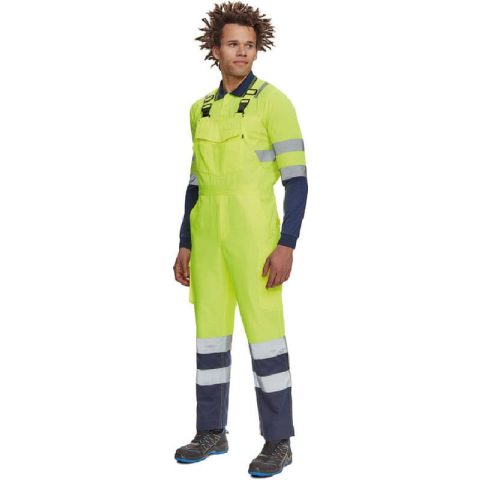Nagy igénybevételre tervezett, könnyed anyagból készült láthatósági kantáros nadrág, széles, dupla soros fényvisszaverő csíkokkal a lábszáron. Speciális anyagának köszönhetően meleg időben is kíváló viselési komfortot biztosít. Férfi Hi-Vis láthatóság
