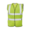 Jól láthatósági mellény Alapanyag: 100 % poliészter A termék megfelel az EN 340, EN 471 szabványoknak. Jól láthatósági mellény fényvisszavető csíkokkal, EN 471: 2,2 3 fényvisszavető csíkkal amiknek a szélessége 5 cm Tépőzáras, fekete kontrasztos szegés