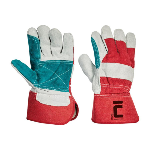 MAGPIE kesztyű (C0101001899120) - Bélelt és többletréteggel erősített hasított marhabőr tenyerű - valamint fehér pamutszövet kézhátú kesztyű - merev mandzsettával. - Piros 11-es méret - Zöld 12-es méret