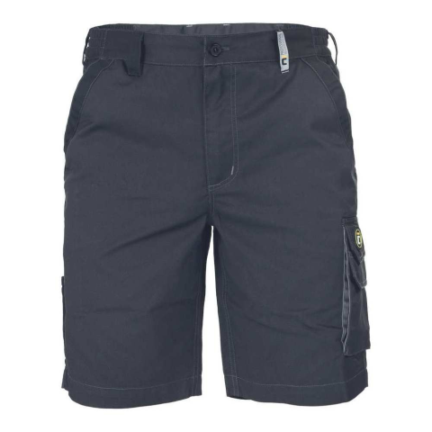 Férfi munkás rövidnadrág rugalmas anyagból Relax szabású, rugalmas oldal gumírozással a derék részén. Több praktikus zsebbel rendelkezik. 2 oldalzseb, 1 bal combzseb és 2 hátsó zseb tépőzárral. Elől és hátul fényvisszavető csíkokkal van ellátva a rövid