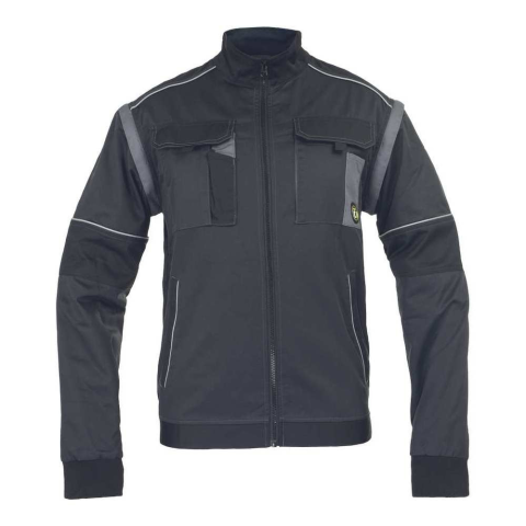 Anyagában rugalmas munkáskabát A férfi munkakabát cipzárral, takart patentes borítással készül. További jellemzői: • 2 oldalzseb • 2 tépőzáras mellzseb • megerősített vállrészek • levehető ujjak rugalmas mandzsettákkal • rugalmas derékpánt • fényvis