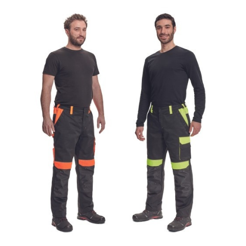 Méretek: 44-68 Anyag: 65 % poliészter, 35 % pamut, 250 g/m² Leírás: férfi munkanadrág rugalmas derékkal; 2 első zseb, 1 dupla oldalzseb a bal combon; 2 hátsó zseb; 2 kis hátsó zseb a jobb combon; fényvisszavető szegés; Oxford 600D megerősített t