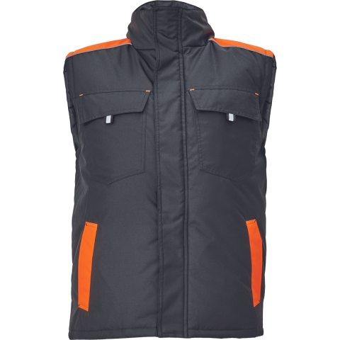 Víz és szélálló téli bélelt mellény, strapabíró anyagból, magasított állógallérral. Kíválóan passzol a max vivo munkaruhákhoz. Víz és szélálló Max VIVO téli bélelt mellény Végigcipzáras kivitel, tépőzáras cipzártakaróval, állógallérral A vállakon fén
