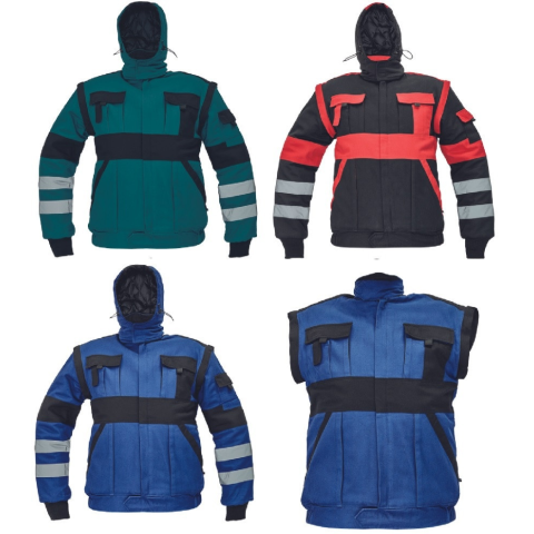 Anyag: Külső felület: 100 % pamut, 260 g/m² Belül bélelt: 100 % poliészter Leírás: • a népszerű MAX téli dzseki fejlesztett változata, fényvisszavető csíkkal a test és az ujjak körül Szabványok: EN ISO 13688 Jellemzők: 2in1, lecsato
