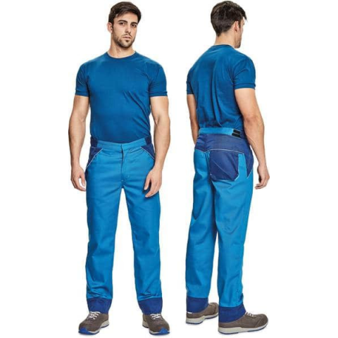 Kevert szálas, könnyű anyagból készült, nyári viseletre alkalmas montrose munkásnadrág. Derékbősége tépőzárral állítható, hálós betéteinek köszönhetően jól szellőző nadrág. Derekas munkásnadrág, könnyű pamut-PES kevert szálas anyagból Dekoratív díszcs