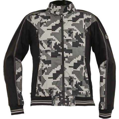Innovatív, pamut gazdag anyagból készült, digitális terepmintás külsővel rendelkező munkáskabát. Divatos megjelenésű, végigcipzáras kivitelben, elasztikus ujjvégekkel és derékrésszel, 4db zsebbel. Digitális terepmintás külsővel rendelkező munkáskabát
