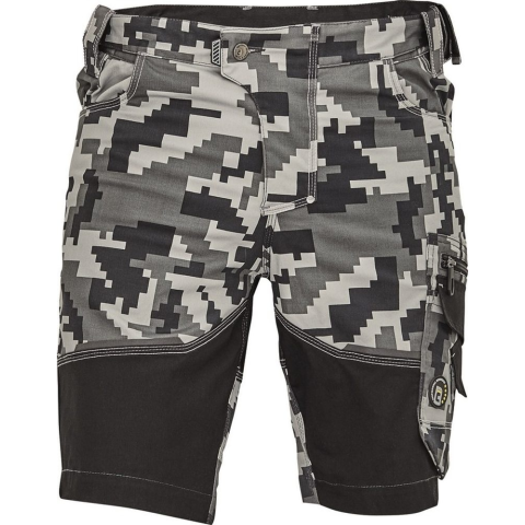 Egyedi megjelenésű, digitális terepmintás munkavédelmi rövidnadrág, innovatív, rugalmas anyagból. Nagy igénybevételre tervezett, magas ellenálló képességű rövidnadrág, jól pakolható, praktikus zsebekkel. Munkás rövidnadrág rugalmas TRIFIBETEX anyagbó