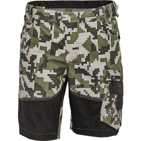 Egyedi megjelenésű, digitális terepmintás munkavédelmi rövidnadrág, innovatív, rugalmas anyagból. Nagy igénybevételre tervezett, magas ellenálló képességű rövidnadrág, jól pakolható, praktikus zsebekkel. Munkás rövidnadrág rugalmas TRIFIBETEX anyagbó