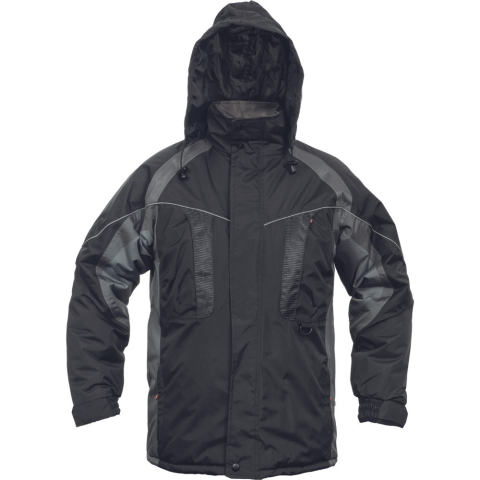 Vékony, bélelt kabát Alapanyag:100 % poliészter bevonattal PVC, 230 g /m² Bélelt vízálló kabát gallérba hajtott kapucnival külső szövet kopásállóságot növelő kezeléssel Alsó szegés zsinórral szűkíthető Fényvisszavető kiegészítők