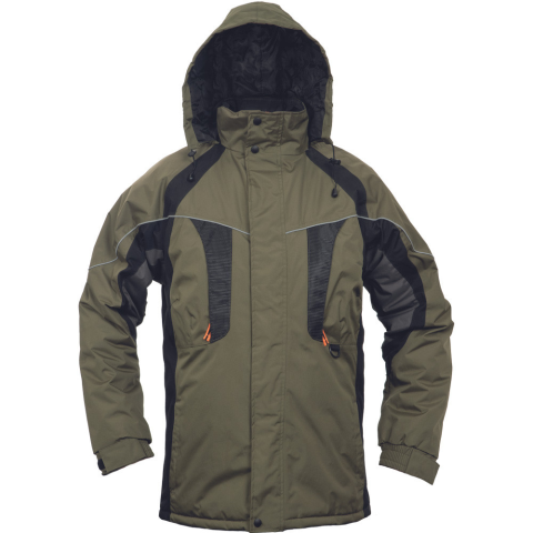 Vékony, bélelt kabát Alapanyag:100 % poliészter bevonattal PVC, 230 g /m² Bélelt vízálló kabát gallérba hajtott kapucnival külső szövet kopásállóságot növelő kezeléssel Alsó szegés zsinórral szűkíthető Fényvisszavető kiegészítők