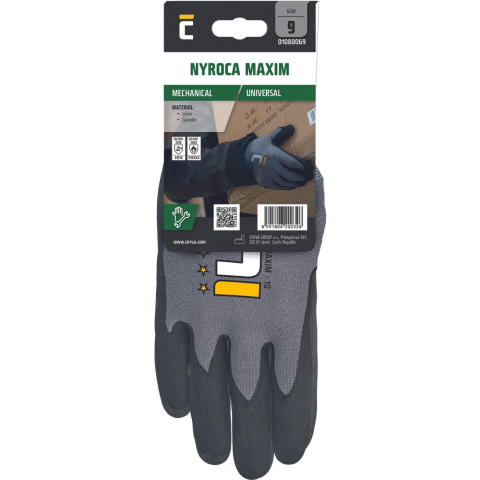 Nyroca Maxim FH mártott védőkesztyű Munkavédelmi kesztyű, nylon/lycra dzsörzé, mikroporózus nitril mártással. Kiváló folyadékállóság, jól tapad minden helyzetben: száraz, vizes és olajos környezetben is. Alapanyag: nylon/lycra dzsörzé, mikroporózus nitr