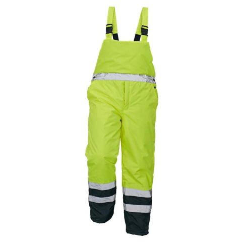Alapanyag: 100 % Oxford poliészter/PU, bélés 100 % poliészter A termék megfelel az EN 340, EN471 szabványoknak. Vízálló, melegen bélelt mellesnadrág figyelemfelkeltő színben, fényvisszavető csíkokkalMegfelel az EN 471 szabványnakÁllítható gumírozott kan