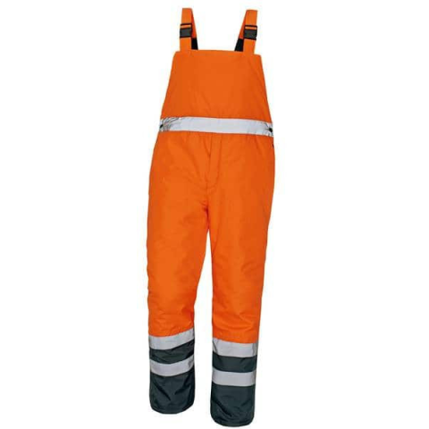 Melegen bélelt, vízálló, lélegző láthatósági kantáros téli nadrág. Több pontban széles fényvisszaverő csíkok gondoskodnak a jól láthatóságról. Kantárjai hátul gumírozottak. Melegen bélelt jól láthatósági kantáros nadrág vízálló külső résszel, figyelem