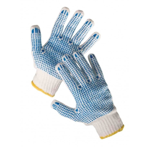 Cérnakesztyű mindkét oldalán pöttyözött Poliészter/pamut keverékből készült, kopásálló kesztyű Mindkét oldalán PVC csúszásgátló pöttyözéssel Varratmentes, kötött, megfordítva is használható kesztyű GumÍrozott mandzsetta Minimális rendelési mennyiség 12 p