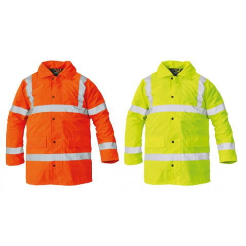 SEFTON kabát HV sárga L • jólláthatósági bélelt vízálló kabát fényvisszavető csíkokkal: EN 471: 3,2 • gallérba hajtott kapucnival, húzózsinórral • belső kötött mandzsetta • vízállóság 3. osztály és lélegzőképesség 1. osztály az EN 343 szabvány szerint