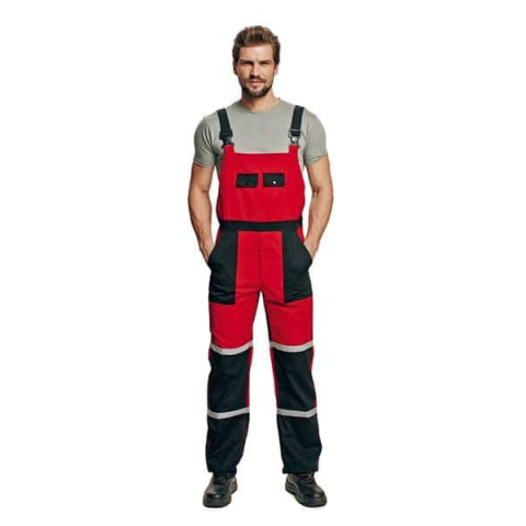 TAYRA mellesnadrág piros 48 • rugalmas nadrágtartó műanyag csatokkal • osztott mellzseb két hajtókával és patenttal • multifunkciós zsebek • collstockzseb • cipzáras slicc • két hátsó zseb - fényvisszavető kiegészítők-2,5 cm széles szalagok