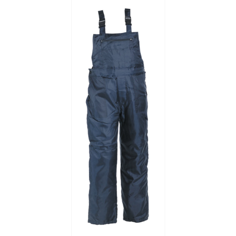 TITAN téli nadrág kék XL • bélelt mellesnadrág • szél- és vízálló kivitel • oldalsó patentos záródással • PVC csatokkal állítható pántokkal • praktikus zsebekkel és kalapácstartóval