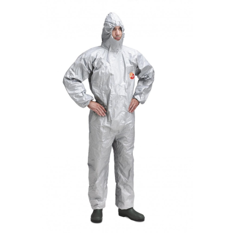 TYCHEM F szürke - XXLA CE III. osztályba, a 3, 4, 5. és 6. típusba tartozó, koncentrált szervetlen és szerves vegyszerekkel, valamint ultrafinom szemcsékkel szemben ellenálló, antisztatikus, vízálló Tychem F (DuPont) overall csuklyával és leragasztott