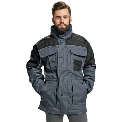 Nagy méretű zsebekkel ellátott, vízálló külsőrésszel készült kapucnis téli, bélelt kabát. Külső része tartós, szakadásbiztos anyagból készült. Meleg bélésű, vízhatlan dzseki kényelmes szabással Végigcipzáras kivitel, patentos cipzártakaróval, gallérba