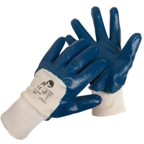 URBICA FH mártott nitril védőkesztyű - 10 Nitrilbe félig mártott, varrott pamutkesztyű rugalmas mandzsettával.