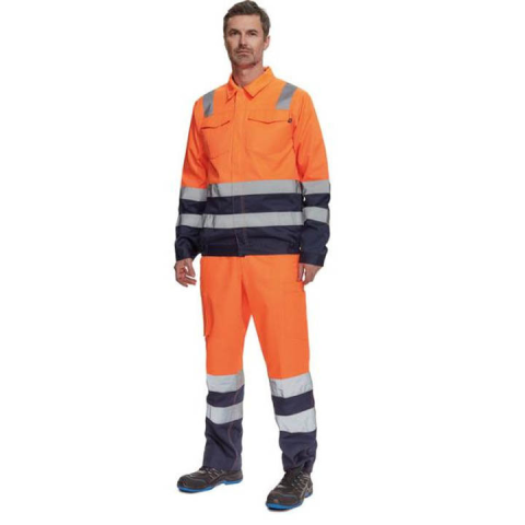 CERVA Valencia jól láthatósági kabátFérfi jól láthatósági kabát 5 cm széles fényvisszavető csíkokkalCipzáras, tépőzáras hajtókával2 nagy hajtókás mellkasi zsebRugalmas oldalsó betétek a kabát aljánTépőzáras mandzsettaSzín: sárga/sötétkék, narancs/sötétkék