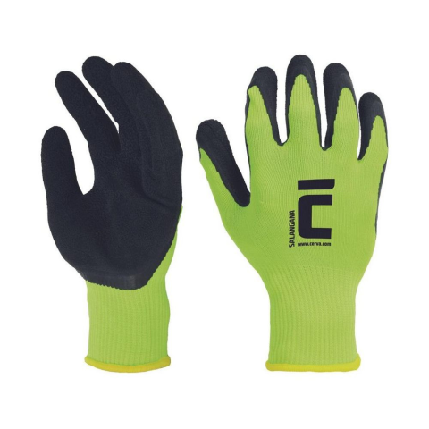 Munkáskesztyű latex Salangana Varrat nélküli poliészter kesztyű, rendkívül rugalmas és kényelmes védőkesztyű. Rendkívüli fogásbiztonság száraz és olajos környezetben, hiszen a mártás ellenáll a víznek- és olajoknak is. Rugalmas mandzsettája pedig tökélet