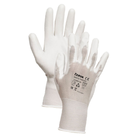 WHITETHROAT(0108012880060) kesztyű nylon-18G fehér - Szupervékony, légáteresztő kötött nylon védőkesztyű PU mártással. - Tökéletes ergonómia, precíz tapintás. - Rugalmas mandzsettával. - Szabvány(ok): EN 420 EN 388 / 2121