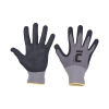 Nitrilbe mártott pontozott kesztyű Nylon / elasztán kötött védőkesztyű. Nitril pöttyözés a tenyéren és az ujjakon. Mártás: nitril Alapanyag: poliamid(nejlon), elasztán Mártott terület: Tenyér, Ujjak Szabványok: EN ISO 21420, EN 388 (3121A)