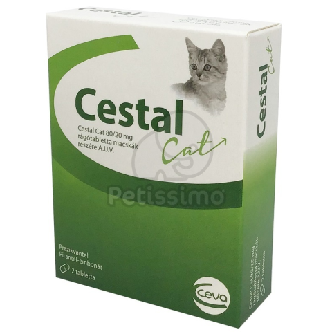 Cestal Cat 80/20 mg rágótabletta macskák részére A.U.V. JELLEMZŐK: - Hatékony a Magyarországon leggyakoribb bélférgek ellen (orsóférgesség, kampósférgesség, galandférgesség) - Egyszeri kezelés elegendő a szokásos féregtelenítéshez - A macskák 83%-a önként elfogyasztja* - A Cestal Cat már több mint 20 éve van jelen a piacon és ez idő alatt több termékfejlesztésen is átesett, hogy minél jobban kiszolgálhassa a folyton alakuló igényeket. - A most megújult
