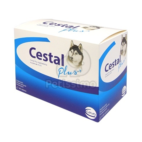 Cestal Plus rágótabletta kutyáknak A.U.V. 1. MINŐSÉGI ÉS MENNYISÉGI ÖSSZETÉTEL Minden rágótabletta tartalmaz:Hatóanyagok:- Prazikvantel 50 mg- Pirantel-embonát 144 mg- Fenbendazol 200 mg 2. GYÓGYSZERFORMA Rágótabletta. Barnás, ovális, osztható rágótabletta. 3. Célállat fajok Kutya. 4. Terápiás javallatok célállat fajonként Kutyák valamennyi jelentős bélféreg-fertőzöttségének kezelésére:- Galandférgesség: Echinococcus granulosus, Taenia spp,, Dipylidium ca