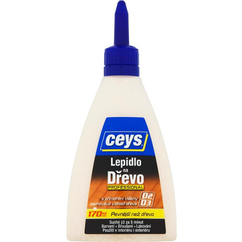 Ragasztó - diszperziós, merev kötést létesít, 115 kg/cm2 szilárdság, alkalmas fa és papír rögzítésére a legkülönfélébb felületekhez A Ceys Professional D2/D3 speciális faragasztó kifejezetten kemény és puha fa ragasztására készült. A természetes rostokat tartalmazó ragasztó rendkívül könnyen felvihető és gyorsan, 5 percen belül sz