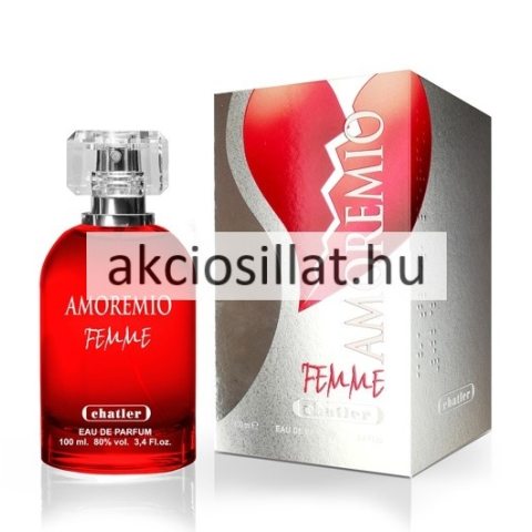 Cacharel Amor Amor parfüm utánzat Chatler Amoremio Femme egy virágos - gyümölcsös illat nőknek. Fej: mandarin, grapefruit, narancs, fekete ribizli, bergamott, Szív: jázmin, rózsa, barack, liliom, gyöngyvirág, Alap: szantálfa, pézsma, vanília, ámbra, cé