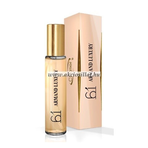 Giorgio Armani Si parfüm utánzatok webáruháza Chatler Armand Luxury 61 Woman 30ml parfüm egy ciprus illat nőknek. Fej: fekete ribizli levél, Szív: frézia, rózsa, Alap: vanília, pacsuli, ambroksan, fás jegyek. Chatler Armand Luxury 61 Woman 30ml parfü