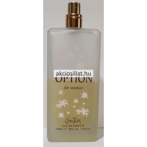 Yves Saint Laurent Opium parfüm utánzat Chatler Option Women TESTER parfüm egy orientális - fűszeres illat nőknek. Fej: koriander, szilva, citrus, mandarin narancs, bors, jázmin, szegfűszeg, Szív: szegfű, szantálfa, pacsuli, fahéj, orrisz gyökér, ősziba