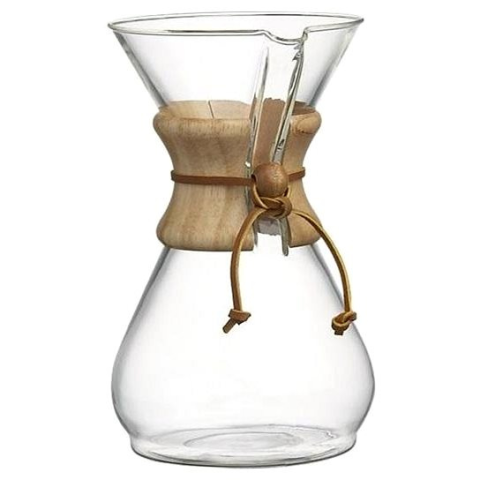 Chemex - űrtartalma 1200 ml, 8 csésze készítésére, fa gallérral, magassága 23 cm, átmérője 12,7 cm, tömege 0,694 kg Szereted a filteres kávéfőzőben készült kávé illatát? Az elegáns Chemex CM-8A kávéfőző megfelelő nem csak a reggeli kávé főzéséhez. A filteres kávéfőző akár 8 csésze kávé elkészítésére is alkalmas. A