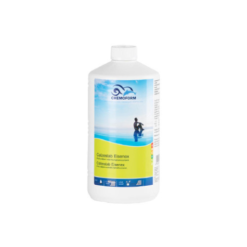 Calzestab Eisenex – Vízlágyító és lerakódásgátló szer medencékhez - 1l A Calzestab Eisenex speciális vízkezelő szer, amely csökkenti a medencevíz keménységét, és megköti a kalciumot, vasat, valamint egyéb szervetlen anyagokat. Alkalmazása során megelőzi