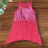 Csini flitteres tunika Bővülő szabású, kerek nyakkivágású, elején csillogó flitterekkel. mell:2x33cm hossz:60cm Hibátlan állapotú.