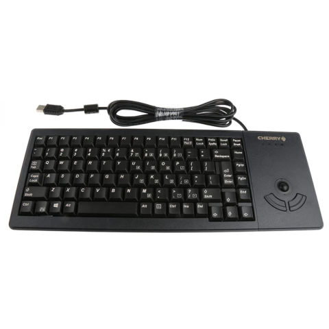 Fekete német billentyűzet Trackballal, USB csatlakozással.