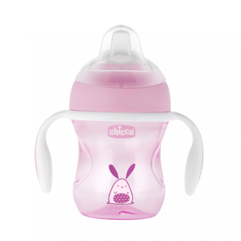 1 kép Chicco Transation Cup csöpögésmentes, szilikoncsőrös itatópohár fülekkel 4 hó+ 200 ml (rózsaszín)