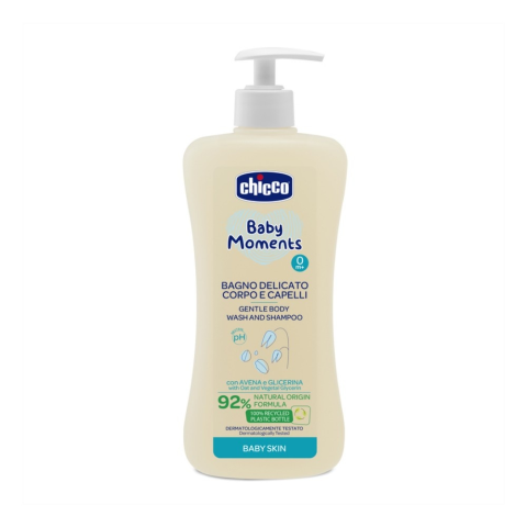 Gyengéd sampon és fürdető, semleges pH-t biztosít. Finom gondoskodás az újszülött első fürdetésétől kezdve. Gazdaságos, takarékos adagolófejjel van ellátva, 92%ban természetes összetevőkkel. Finom gondoskodás az újszülött első fürdetésétől kezdve. Chic
