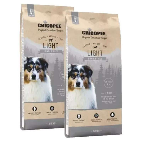 Tedd fel kérdésed a(z) Chicopee CNL Light Lamb & Rice 2x15kg termékről!