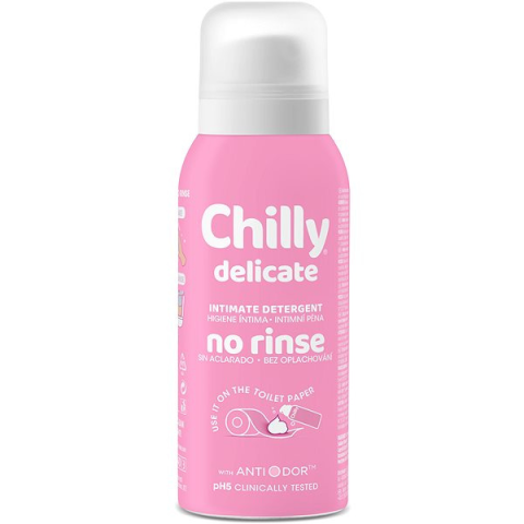 Hab - intim higiéniához, kíméletes és kompakt, WC papírra fújható, öblítést nem igényel, lágyítószerekkel dúsítva A CHILLY No Rinse Delicate habot az intim területek gyengéd tisztítására tervezték. Praktikus alternatívát kínál a legtöbbször nem környezetbarát nedves törlőkendőkkel szemben. Elég, ha a WC-papírra v