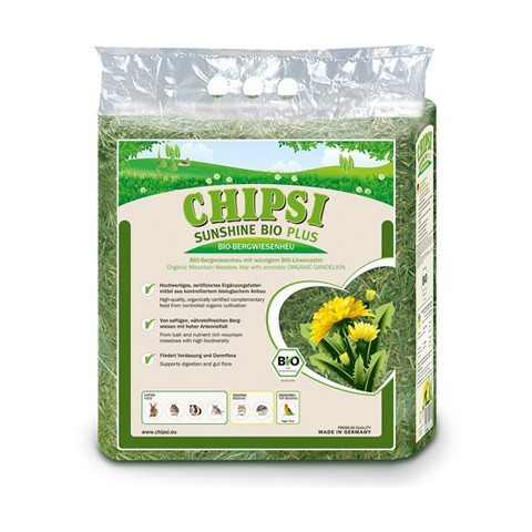 Tápanyagban gazdag Chipsi Bio Gyermekláncfüves széna. Sokféle gyógynövényből, természetes módon szárítva, magas nyersrost tartalommal segíti az emésztést. A Chipsi Bio Gyermekláncfüves szénát szívesen fogyasztják a házi kedvencek. Ez a széna minden vitamint és ásványi anyagot tartalmaz, amelytől az állat fitt lesz és az is marad. Egészségesen és kiegyensúlyozottan táplálja a rágcsálókat és a kisállatokat. Gondoskodik az optimális emésztésről. A rágcs