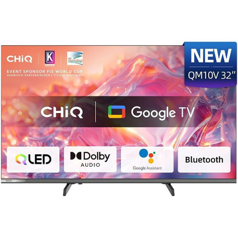 Televízió – Google TV, QLED, 81 cm-es képátló, Full HD, 50/60 Hz, HDR10, DVB-T2/S2/C, 2× HDMI, 1× USB, CI+, LAN, Bluetooth, DLNA, Chromecast, HbbTV 2.0, hangvezérlés, Google Assistant, párosítás mobileszközzel, Oneplay, VESA 200×200, 16 W hangszóró, E energiaosztály Ultravékony keret nélküli fém QLED TV modern technológiákkal és továbbfejlesztett hanggalÉlvezd a változatos tartalmak megtekintését a 80 centiméteres képátlójú Google TV CHiQ L32QM10V Full HD felb