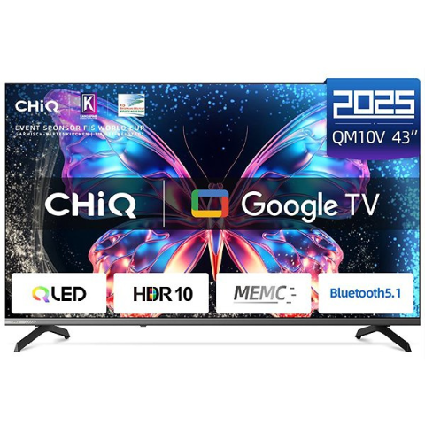 Televízió – Google TV, QLED, 109 cm-es képátló, 4K Ultra HD, 50/60 Hz, HDR10, DVB-T2/S2/C, DVB-T2/S2/C, 3× HDMI, 2× USB, CI+, LAN, Bluetooth, DLNA, Chromecast, HbbTV 2.0, hangvezérlés, Google Assistant, párosítás mobileszközzel, Oneplay, VESA 200×200, 20 W hangszóró, E energiaosztály Ultravékony fém keret nélküli QLED Google TV CHiQ U43QM10VOkostévé 4K felbontással, Dolby Audio hanggal és DLG 120Hz, MEMC, ALLM és VRR játékfunkciókkalÉlvezd a változatos tartalmak