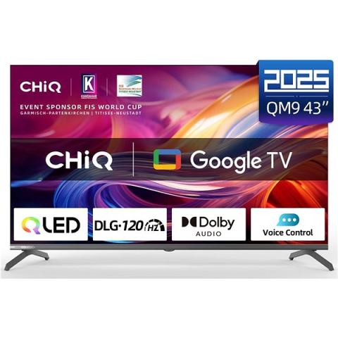 Televízió – Google TV, QLED, 109 cm-es képátló, 4K Ultra HD, 50/60 Hz, HDR10, matt kijelző, DVB-T2/S2/C, 3× HDMI, 2× USB, CI+, LAN, Chromecast, HbbTV 2.0, gamer mód, hangvezérlés, Google Assistant, párosítás mobileszközzel, Oneplay, VESA 200×200, 20 W hangszóró, F energiaosztály Keret nélküli QLED Google TV 4K felbontással, Dolby Audio és továbbfejlesztett dbx-tv hangzássalÉlvezd a különféle tartalmak megtekintését a 108 cm képátlójú, Ultra HD (4K) felbontás