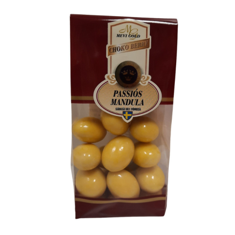 Choko berry passiós mandula 80 g Fehércsokoládés (77%) mandula (20%), passió gyümölcs ízesítéssel Passiós mandula-Összetevök:cukor,MANDULA(20%), kakaóvaj,TELJES TEJPOR,SAVÓPOR,LAKTÓZ,koncentrált passió gyömölcslé,savanyúságot szabályzó(almasav,nátrium